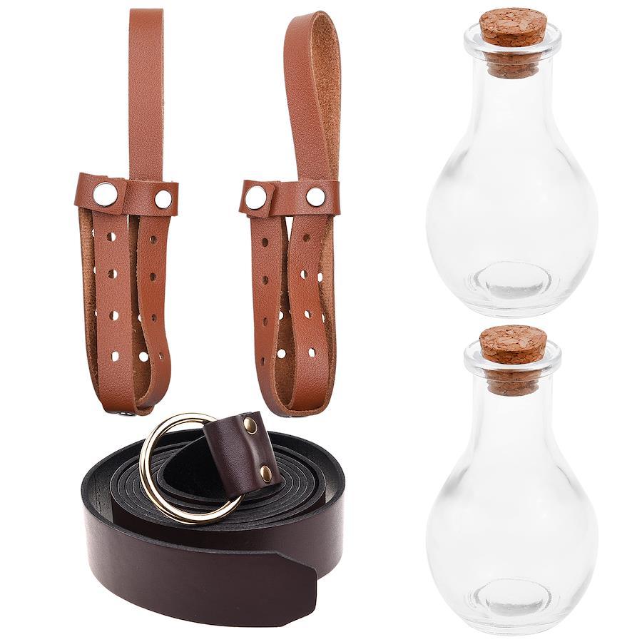 エコフューズ コスプレ ポーションボトル フェイクレザースリーブホルダー付き 中世のOリングナイトベルト - ヴィンテージ - コルク開閉ボトル DIY クラフト 小道具 ディスプレイ ハロウィン