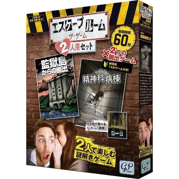 エスケープルーム ザ・ゲーム 2人用セット, 謎解き・脱出ゲーム, 単独プレイ可 自宅で遊べる脱出ゲーム、2人用が登場! カップルで、友達同士で、夫婦や兄弟でも遊びやすい2人用シナリオが2本収録! しかも今度は基本セットがなくても、スマホのアプリで遊べます! ※他の拡張と違い、本製品は単体で遊べます。 ・付属ゲームの紹介 1 監獄島からの脱出:ついにこの時が来た! 慎重にあたためてきた計画通りに火を放つ、火災報知器が鳴る、孤島に建てられた監獄からの脱出劇の始まりだ! (60分) 2 精神科病棟:精神科病棟に収容された彼女から助けを求める手紙が届いた。そこには恐ろしい手術の実験台にされてしまうことが書かれていた。一刻も早く彼女を救い出さなければ! (60分) 3 誘拐(最初に遊ぶ練習用ゲーム):謎の犯人に誘拐された! 監禁場所から脱出せよ! (15分) ◆エスケープルーム ザ・ゲームとは “時限装置"が付いた、自宅で楽しめる脱出ゲーム! 遊び方はかんたん。封筒から中身を出してゲームスタート。謎を解き、時限装置(クロノデコーダー)/またはアプリ上で正しい鍵を挿せば、装置が止まり脱出成功。ただし制限時間は60分。脱出するためには、仲間と協力して謎を解かなければなりません。 今までになかった、全く新しい謎解き/脱出ゲームを、あなたの部屋で体験してみませんか? ※基本セットに付属しているクロノレコーダーを使うとよりスリリングなゲームが楽しめます。