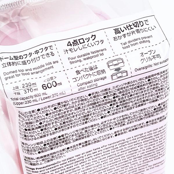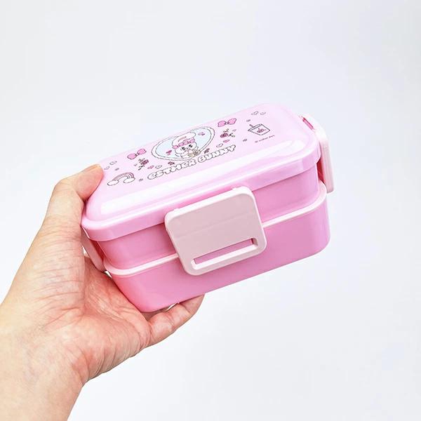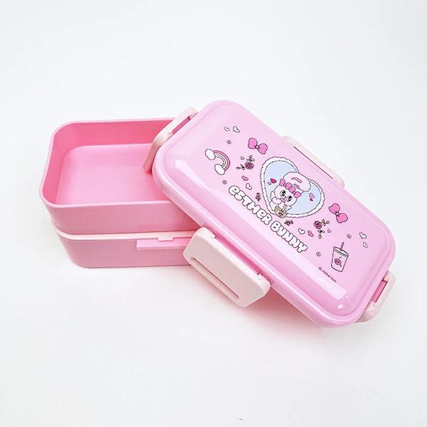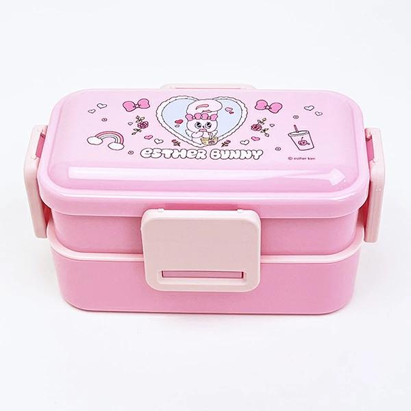 韓国系アメリカ人であるEsther Kim氏がデザインした、POPでガーリーなテイストのウサギのキャラクターの2段ふわっと弁当箱です。ドーム型のフタで、ふんわりとご飯やおかずを盛りつけておいしさUP!高い仕切付きでおかずが片寄りにくく4点ロックの密封式で汁漏れしにくい!!食べ終わった後は入れ子式なので1段に収納できてコンパクト◎エスターバニーのランチアイテムなどと揃えれば、ランチタイムも楽しくなっちゃいそうです☆彡食洗機・電子レンジ使用可◎【容量:600ml(上段230ml、下段370ml)】
