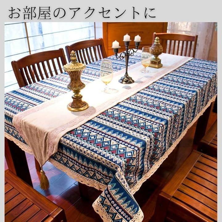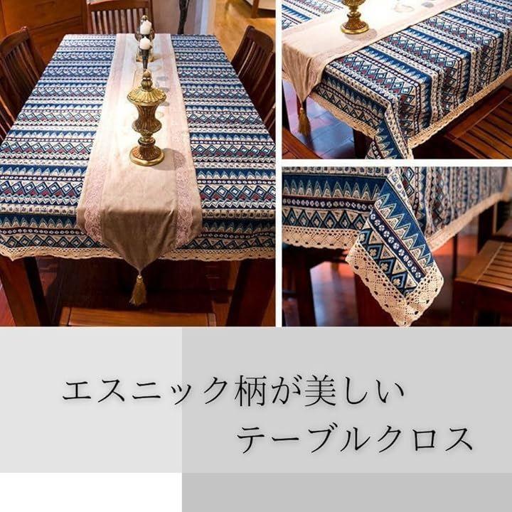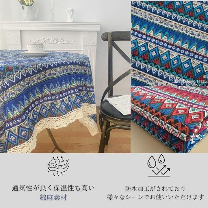 Ethnic pattern tablecloth for square and round tables, waterproof, cotton linen, comfortable to the touch, cute, lace, high quality, 140cm x 220cm
