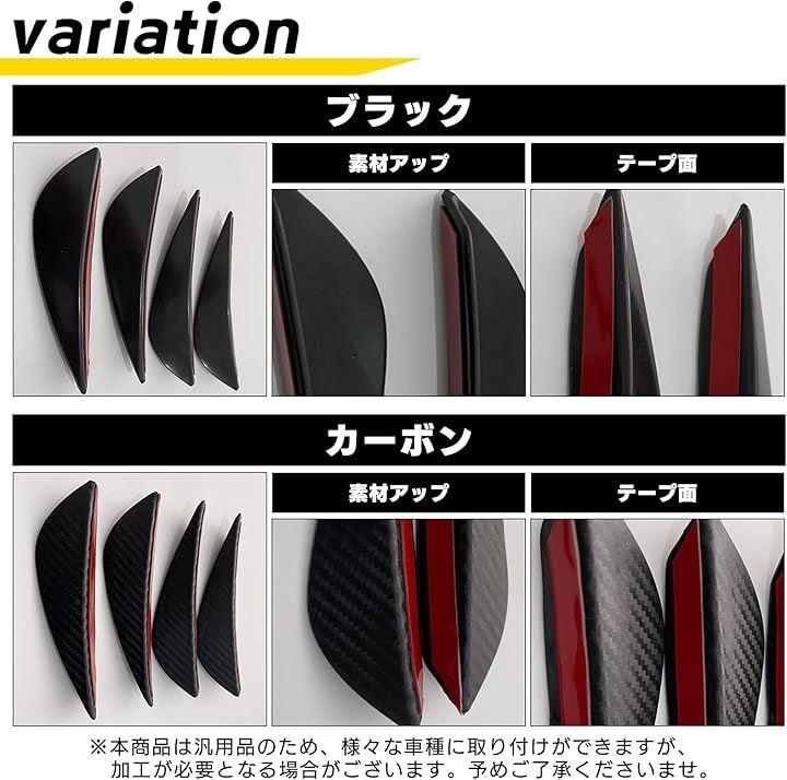 汎用 カナード フロント この汎用カナードをフロントバンパーに取り付けることで、風を効果的に流すシルエットを作り出し、車両のスポーティーな印象を一層強調します。