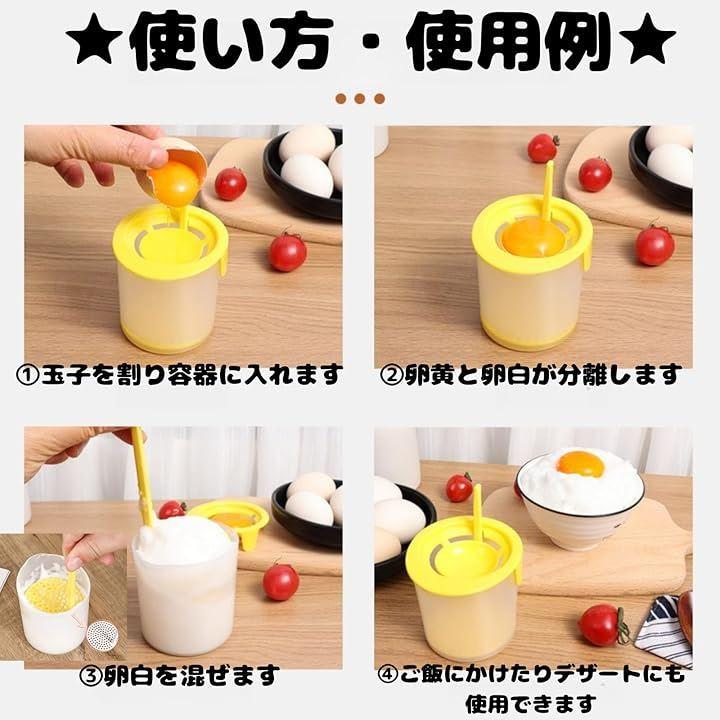 「簡単操作」この卵黄分離器を使えば、卵の白身と黄身を瞬時に簡単に分けることができます。