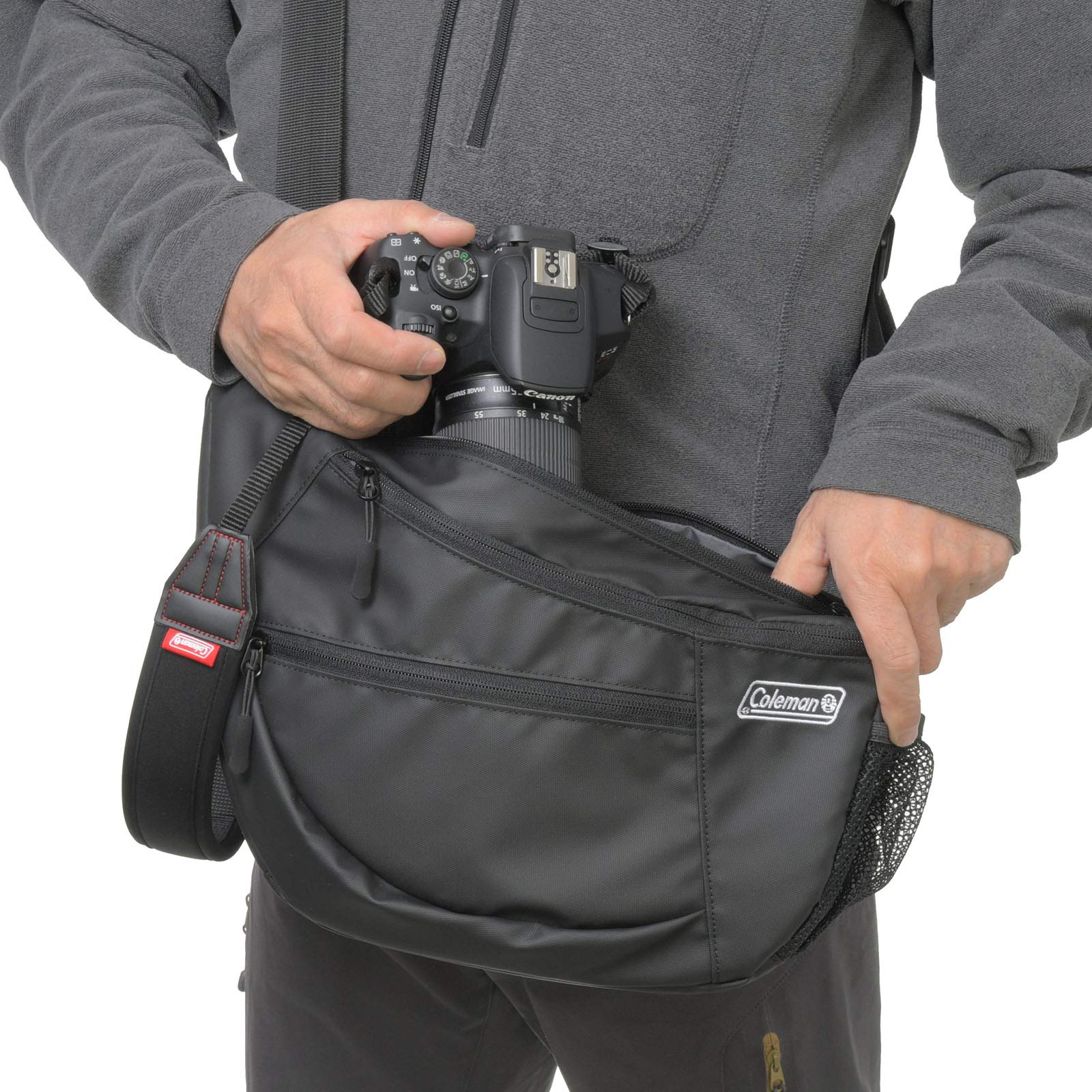 :背面ポケット/カラー : カーボンブラック/中仕切り2枚付属/主要材質 : ポリエステル・本革他/内寸(約) : 奥行110×横幅240×高さ170mm/製品重量(約) : 320g/精悍な雰囲気漂うカーボンブラック。
