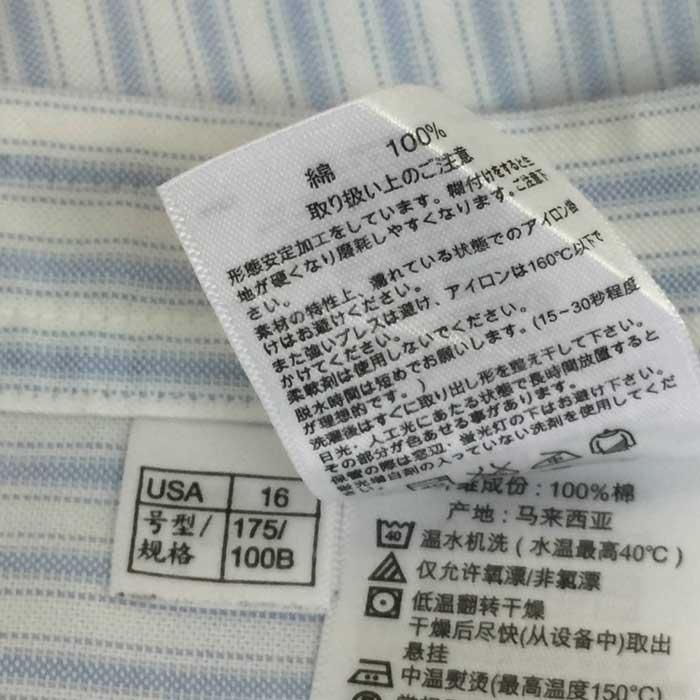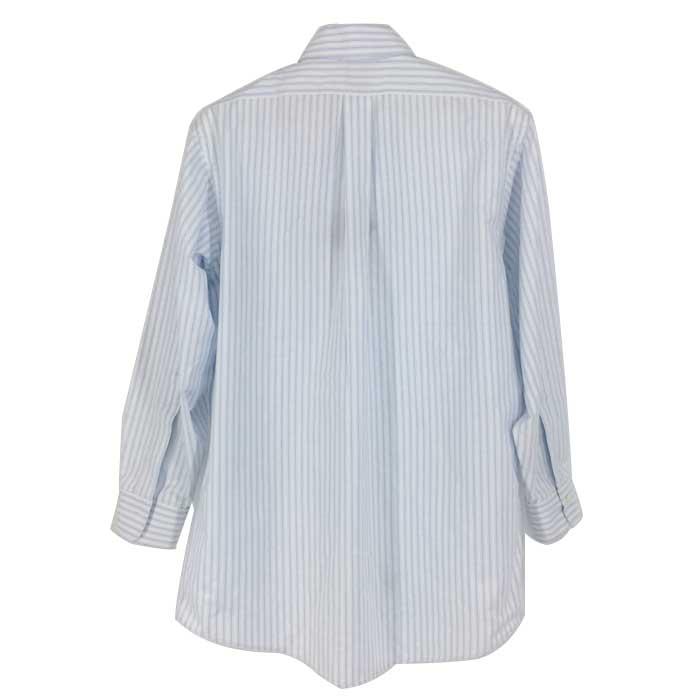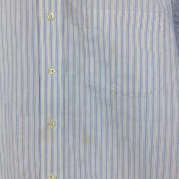 【管理番号】 011717【ブランド名】 Eddie Bauer エディー バウアー【アイテム】 長袖シャツ ボタンダウン 未使用 タグ付き シミあり 175 100B【サイズ】 175/100B 平置採寸(肩幅:約48cm・身幅:約59.5cm・袖丈:約55cm・着丈:約81cm)【色・柄】 ホワイト ブルー ストライプ柄【素材】 綿100%【付属品】 タグ【外観ランク】Sランク【商品補足説明】 前身頃に2cm以下のシミが点在しています。首回りにシミがあります。