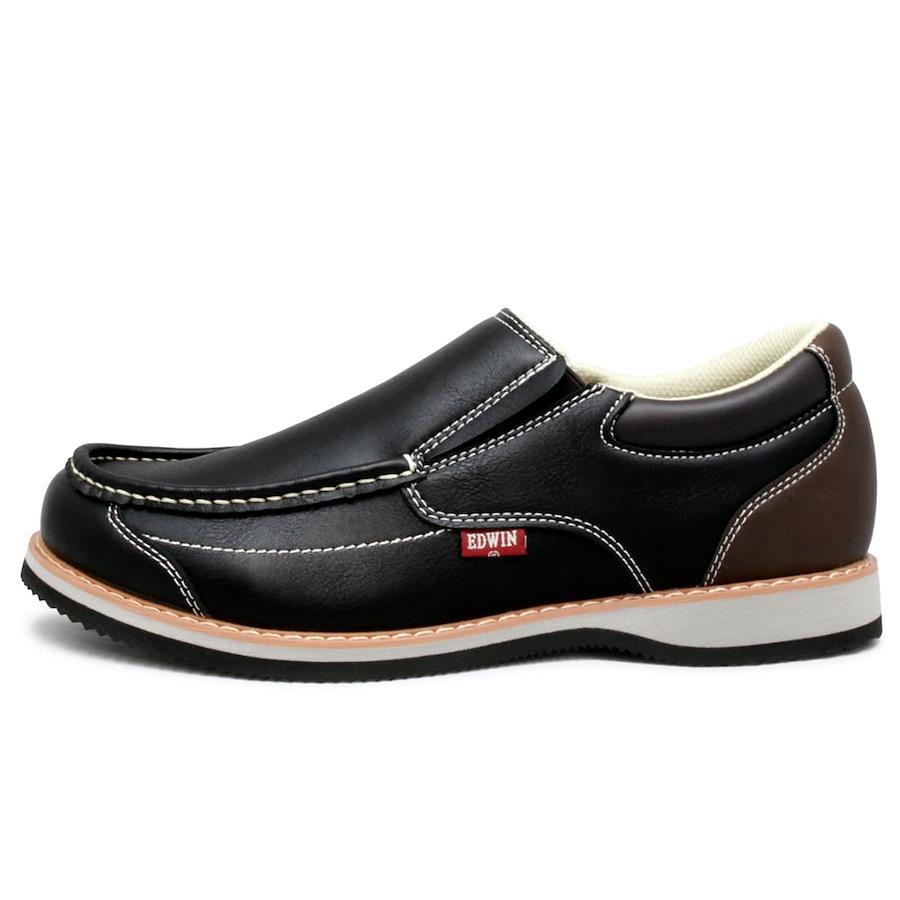 クロージャータイプ バンジー ブランド:EDWIN エドウィン / 型番:EDM9808 / カラー展開:D.BROWN ダークブラウン、BLACK ブラックサイズ展開:25.0、25.5、26.0、26.5、27.0、28.0cm / サイズ感:足幅 3E相当 ふつう - 足長 やや長い / 重量:約 335g (片足 - 26.5cmサイズ)素材:アッパー - 合成皮革、合成繊維 / 底材 - 合成底 / スチール、他企画・生産:日本 / 中国