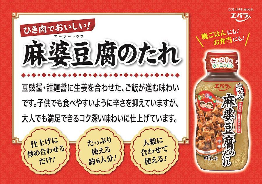 ?【エビチリのタレ】エビと長ネギにたれをからめて焼くだけで、家族が喜ぶ“エビのチリソース炒め"を作りたい分量に合わせて手軽に作ることができる「ボトル入り中華合わせ調味料」です。?【回鍋肉のタレ】豆?と甜麺醤に黒酢を加え、香味野菜(にんにくと生姜)の旨味と香りでご飯によく合う味わいに仕上げました。素焼きした肉や野菜に、コクと旨味が詰まった本品をからめて焼くだけ! 本格的な中華料理を作りたい量に合わせて手軽に作ることができます。?【青椒肉絲のタレ】オイスターソースとホタテの旨味に、香味野菜(生姜とにんにく)、老酒の風味を効かせ、ご飯の進む本格的な味わいに仕上げました。素焼きした肉や野菜に、コクと旨味が詰まった本品をからめて焼くだけ! 本格的な中華料理を作りたい量に合わせて手軽に作ることができます。?【麻婆豆腐のタレ】豆板醤・甜麺醤に生姜を合わせた、ご飯が進む味わいです。子供でも食べやすいように辛さを抑えていますが、大人でも満足できるコク深い味わいに仕上げています。?【便利なボトルタイプ】本品は、1 本で約6 人分を作ることができます。また、量を自在に調節できるボトルタイプなので、具材の量や自分の好みに合わせて必要な分量だけ使用することが可能です。家族が集まる時の大皿料理、1 人で食べるお昼ごはん、お弁当のおかずなど、さまざまなシーンで手軽に中華料理が楽しめます。【重要】メーカーによる商品リニューアルに伴いパッケージ(内容量も含む)変更が行われた場合、新パッケージでお届け致します事ご了承願います。