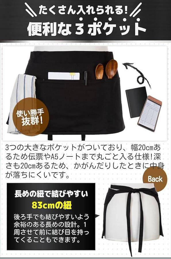 「便利な3ポケット」3つの大きなポケットがついており、幅20cmあるため伝票やA5ノートまで丸ごと入る仕様.深さも20cmあるため、かがんだりしたときに中身が落ちにくいです。