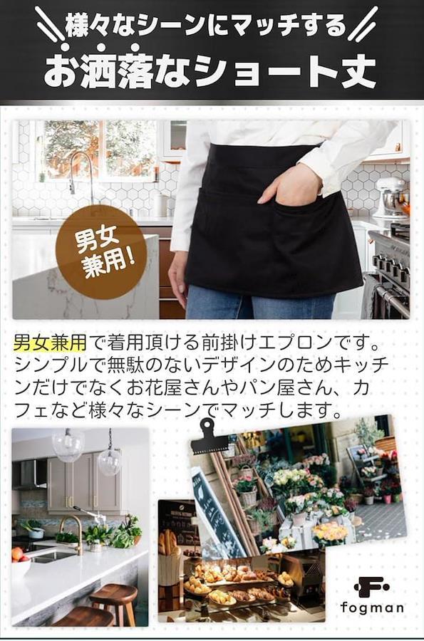 「お洒落なショート丈」男女兼用で着用頂ける前掛けエプロンです。