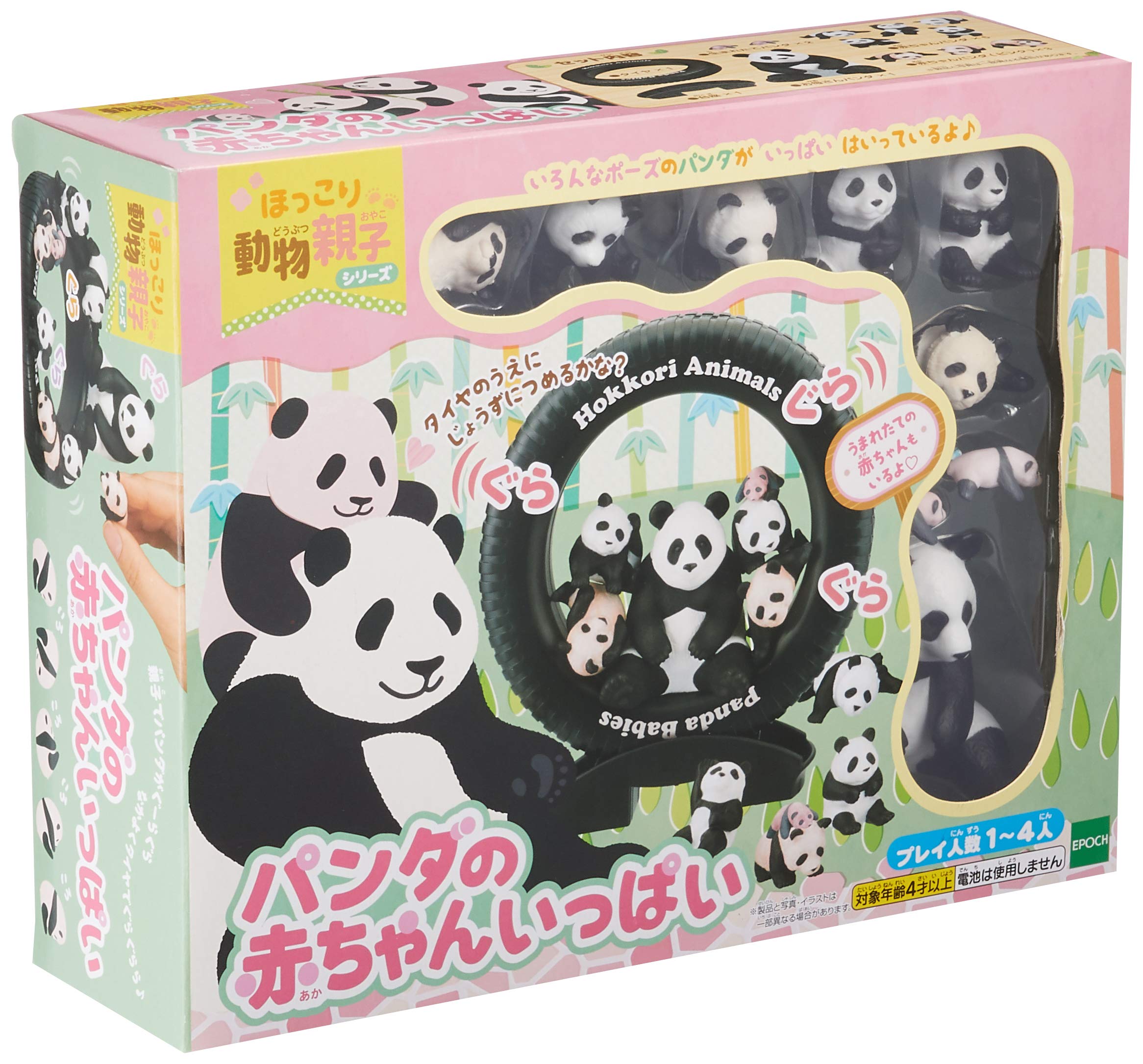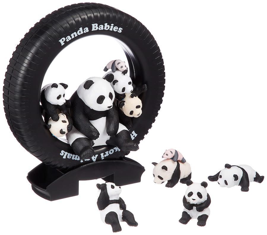 11体のかわいいパンダフィギュアとタイヤのステージがセットになっています。