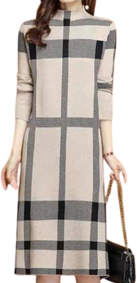 「あったか冬ワンピース」ニット生地で暖かく、冬に大活躍するチェック柄ワンピースです。