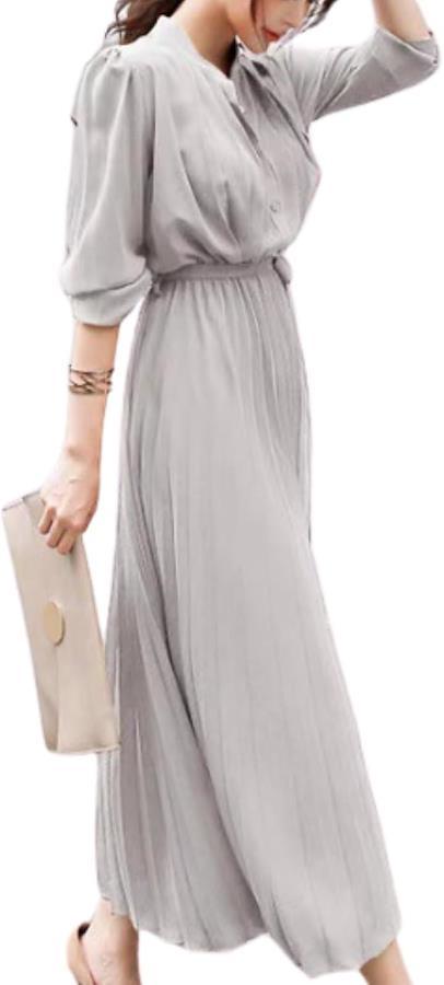 「上品でエレガントなデザイン」この秋、上品でエレガントな「レディース ロングワンピース」で、大人の魅力を引き立てませんか?なんといっても生地を贅沢に使ったプリーツスカートが特徴的で、さらっとした薄手の生地なので重たくなりません。