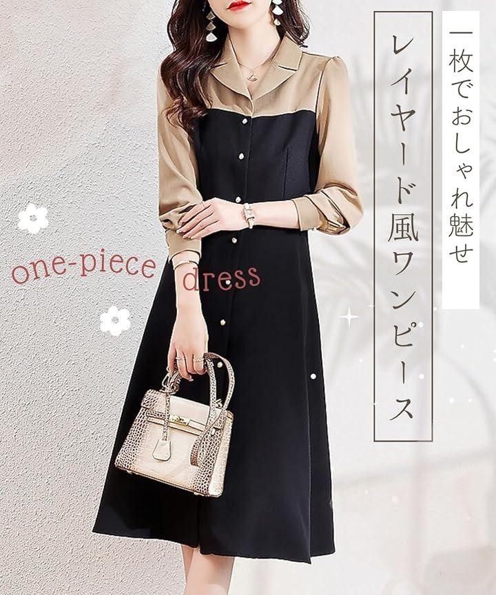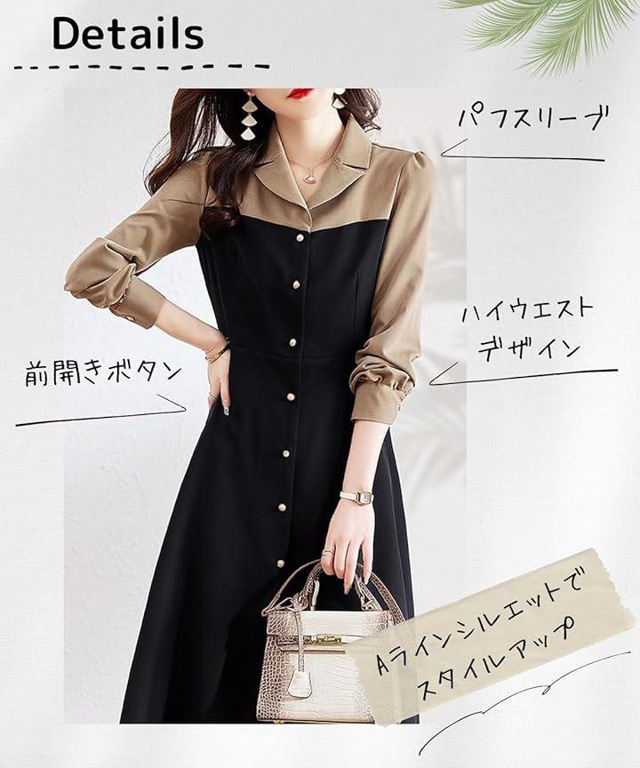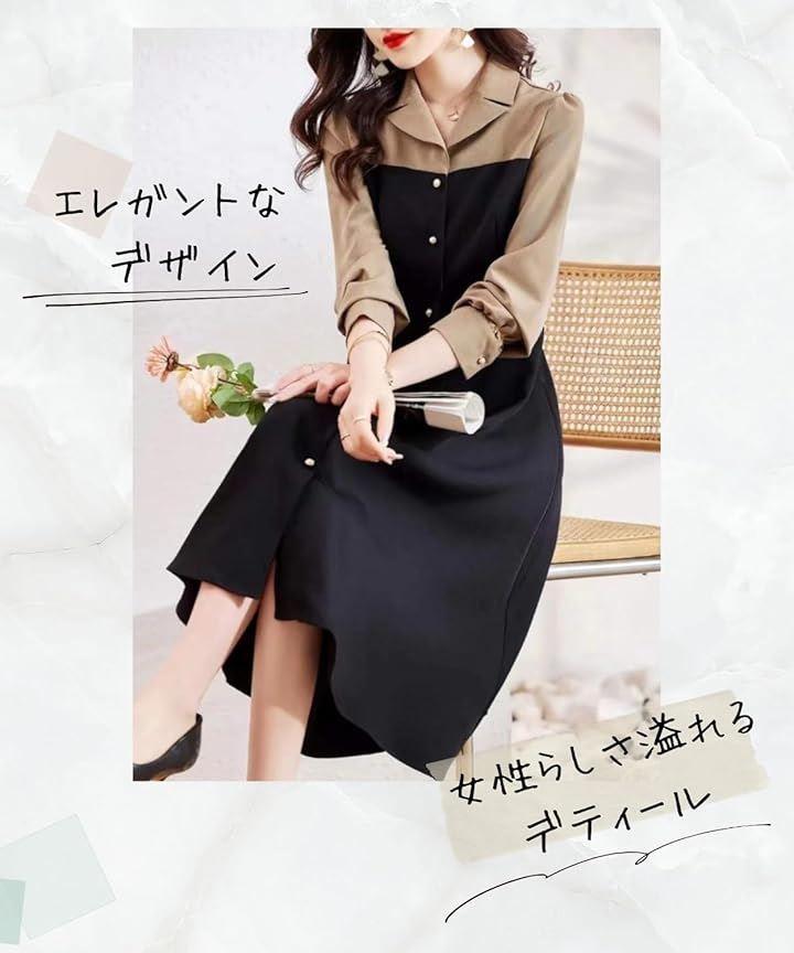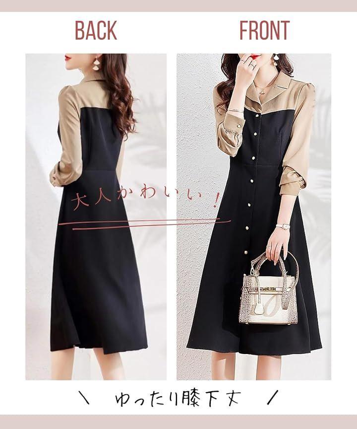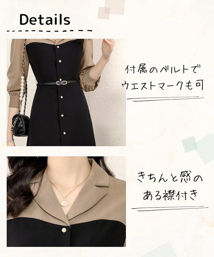 「幅広いシーンで活躍する一着」黒とベージュのバイカラーで、上品な印象のワンピースなので、通勤(オフィスカジュアル)から、デートや女子会、お呼ばれの場にもぴったりです。