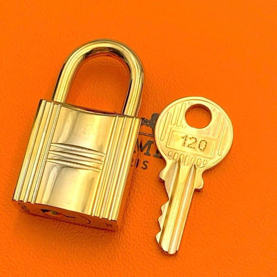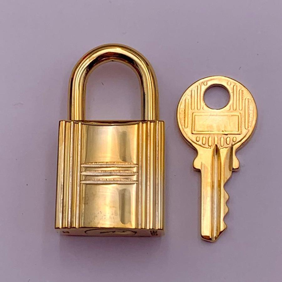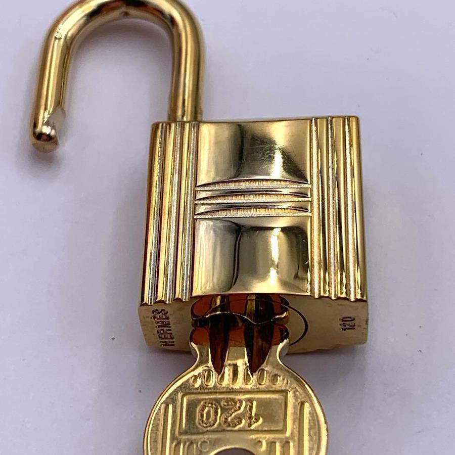 HERMES エルメス カデナ 24Kメッキ No.120 120番 鍵付き カデナキー パドロック チャーム アクセサリー 南京錠 鍵 カギ かぎ Cadena Key Padlock