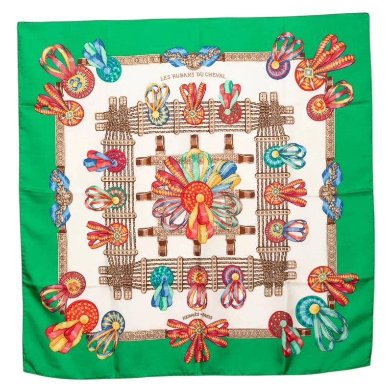 - エルメス カレ90 スカーフ グリーン マルチカラー シルク レディース HERMES 【中古】