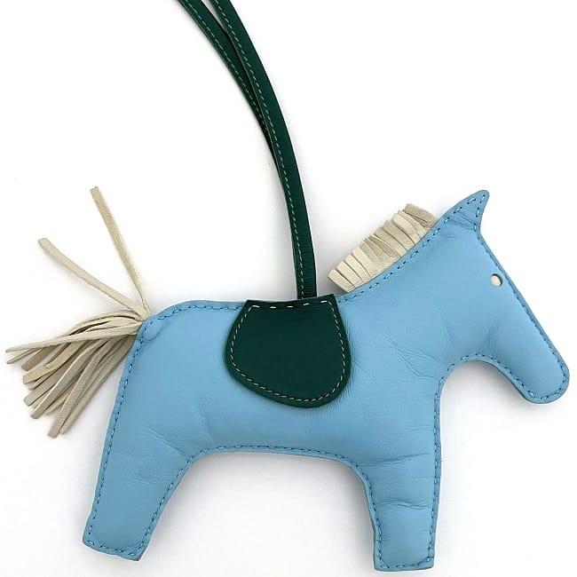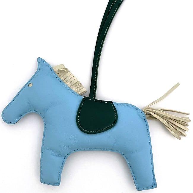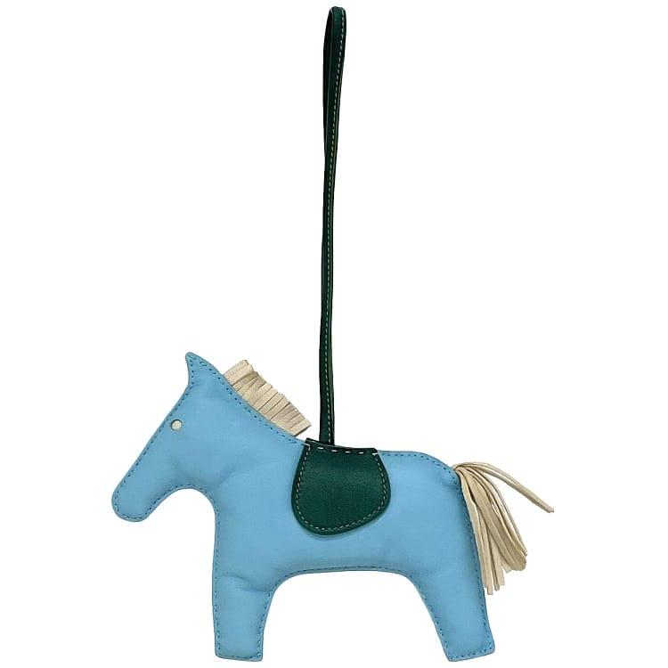 Hermes Charm Rodeo GM Light Blue Green Celeste Cre Malachite Good Condition Leather Agnès Milo Used HERMES Bag Charm Blue Green Horse Keychain Horse Charm Accessory Horse Classic Popular Women's