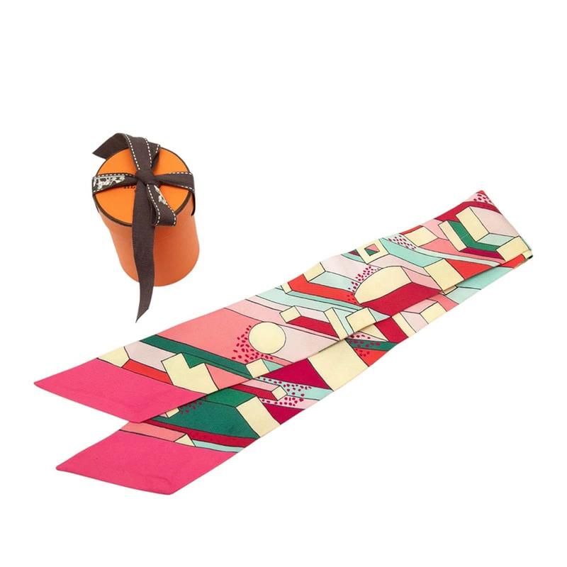 - エルメス ツイリー スカーフ ピンク マルチカラー シルク レディース HERMES 【中古】