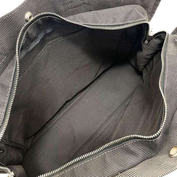 外側:型崩れ・折り畳み癖が付き、ナイロンキャンバス地は所々に擦れ・擦り減り・シワ等が見られます。持ち手は倒れ癖が付き、擦り減り・毛羽立ち等があり、金具には擦り傷・クスミ等がございます。その他は大きく目立つダメージ等ございません。