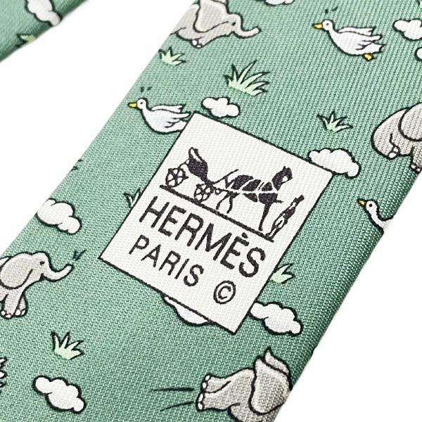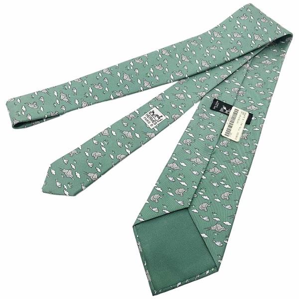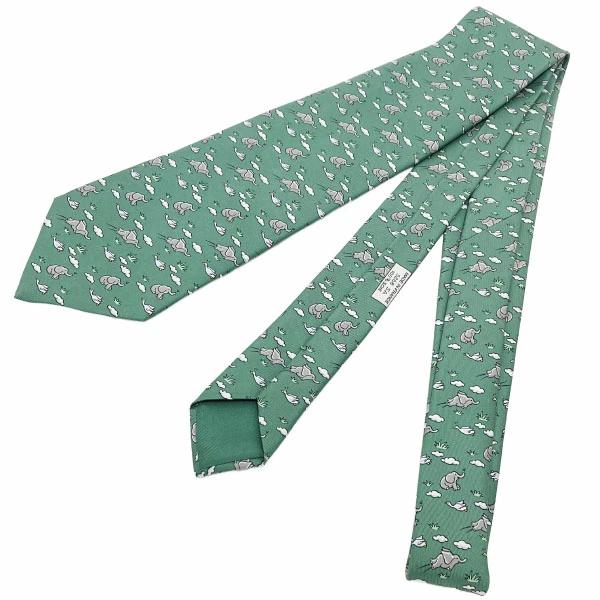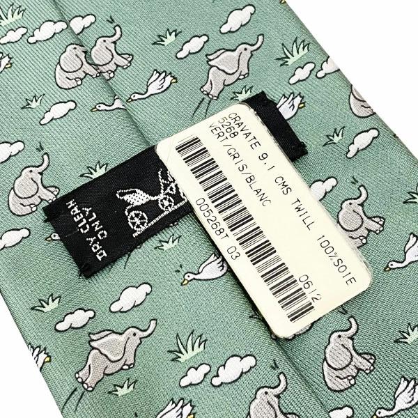 Hermès 100% Silk Necktie in Green and Multicolor. Features an elephant, bird, and animal motifs, as well as a cloud and spider. Perfect for business suits and suits. Perfect for Father's Day, Christmas, birthdays, or any occasion. Comes with box. [Unused]
