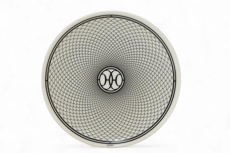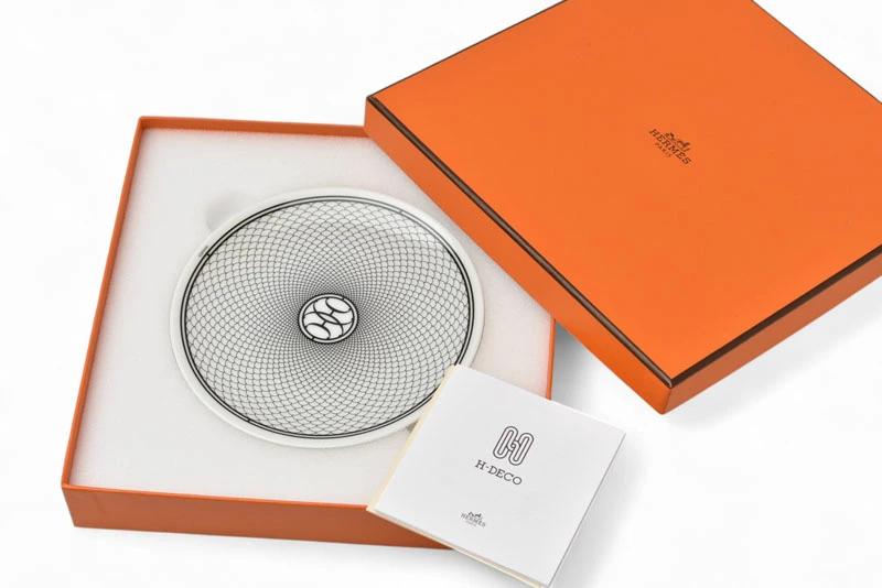 商品説明 | フランスの名門ブランド、エルメスの人気テーブルウェアシリーズ、H Deco/アッシュデコの14cmパンプレートです。パリのオートクチュールを彷彿とさせる繊細なブラック装飾が、真っ白な磁器に映える優美なデザイン。幾何学模様のようなアールデコ調モチーフは、クラシックとモダンが融合した独自の世界観を演出します。パン皿としてはもちろん、デザートや前菜、小物置きなど多用途に使えるサイズ感で、贈り物にも最適です。 デザイナー:ブノワ=ピエール・エムリー サイズ: 約H14cm×W14cm |