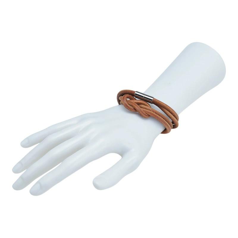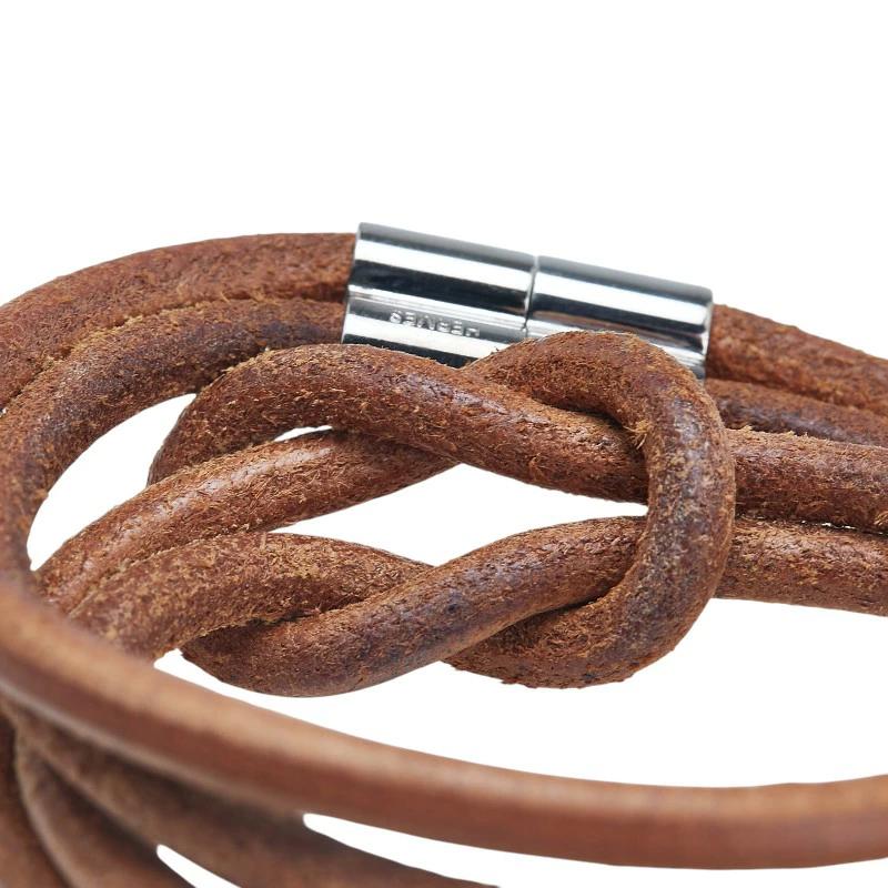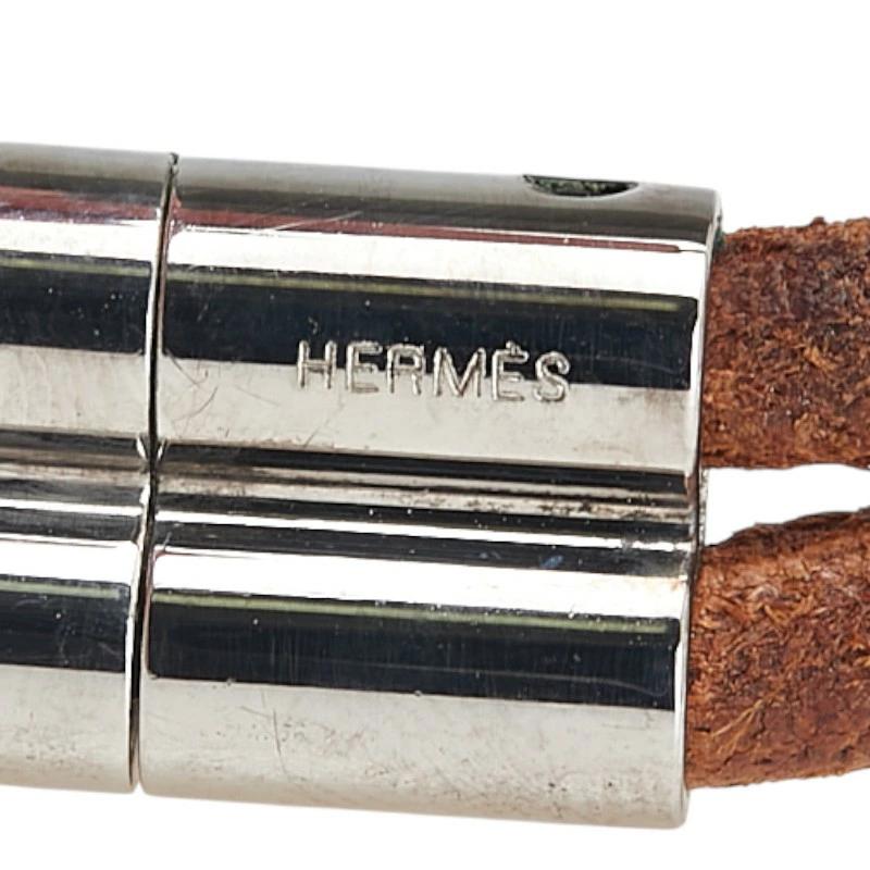 - エルメス 2連ブレスレット チョーカー ブラウン シルバー レザー メタル レディース HERMES 【中古】