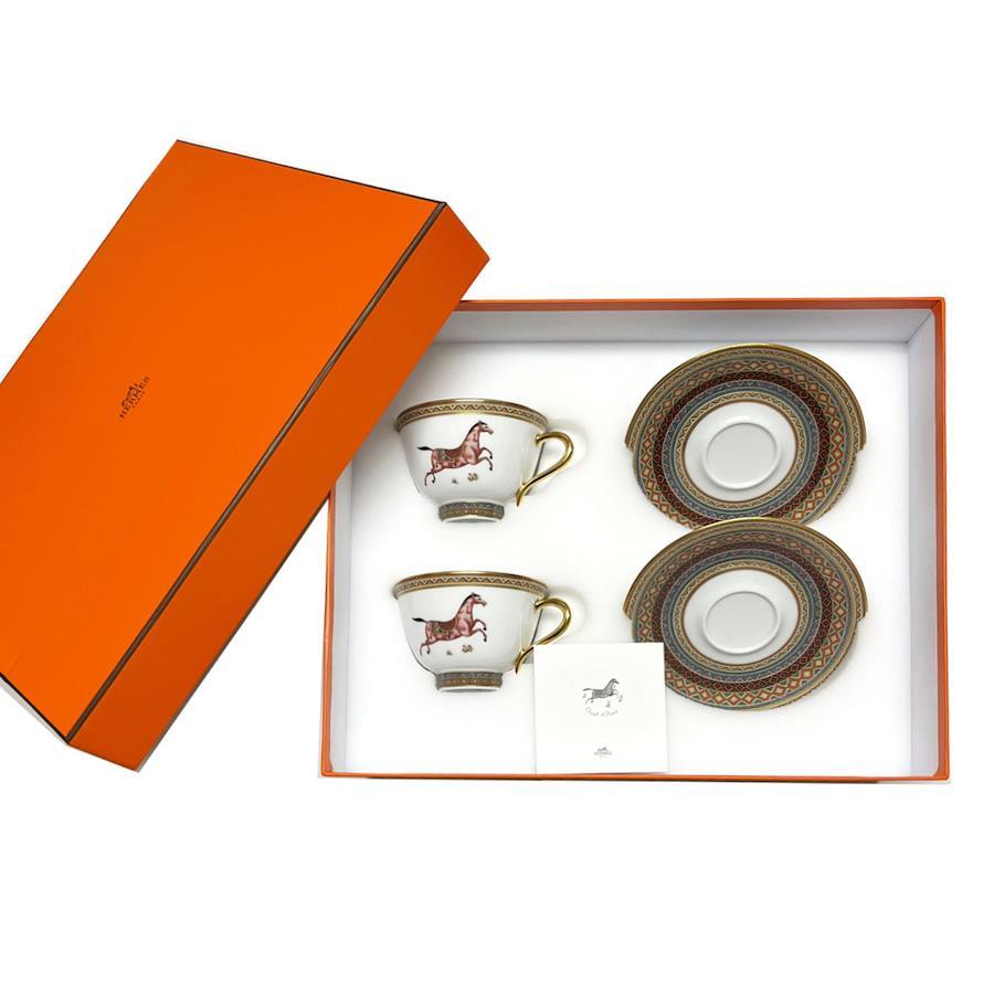商品名:エルメス 食器 ペア HERMES 009883P CHEVAL DORIENT シュヴァルドリアン シュバルドリアン ティーカップ&ソーサー セット No.3 TASSE A THE ET SOUCOUPE 2客セット 馬柄+マルチカラー