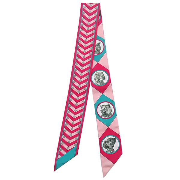 エルメス HERMES ツイリー ツイリー スカーフ シルク フランボワーズ×ヴェール×ローズ 【Colliers et Chiens Plumetis/首輪と犬】 - レディース 【箱】定番 人気 美品 【中古】
