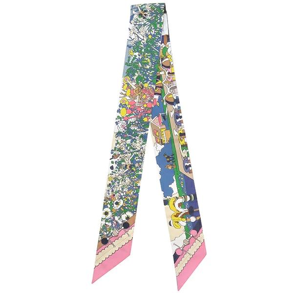 エルメス HERMES ツイリー ツイリー スカーフ シルク ブルー×グリーン×ピンク×マルチカラー 【PONY PIT STOP/ポニー ピット ストップ】 - レディース 【箱】定番 人気 美品 【中古】