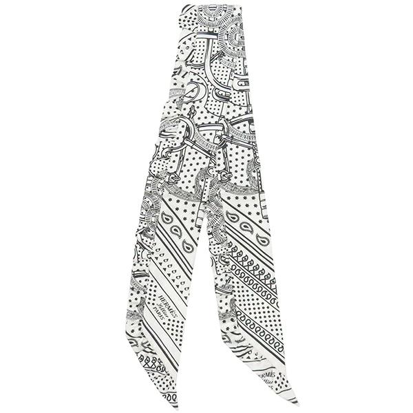 エルメス HERMES ツイリー ツイリー スカーフ シルク ホワイト×ブラック 【Frilled Eperon d'Or Bandana/フリル エプロンドール バンダナ】 - レディース 【箱】定番 人気 美品 【中古】