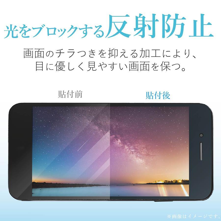 【対応機種】 シンプルスマホ4シンプルスマホ4用の液晶画面を守り、指紋・皮脂が付きにくく、残った場合も簡単に拭き取れる指紋防止タイプの液晶保護フィルムです。時間の経過とともに気泡が目立たなくなる特殊吸着層を採用したエアレスタイプです。小さな気泡ができたときには、指などで押し出すことで気泡を抜くことができます。指紋汚れを付きにくくする指紋防止コーティングを施しています。光の映り込みを抑え、見やすい画面を実現する反射防止タイプです。チラツキ低減加工によりフィルムのチラつきを防ぎ、目に優しく見やすい画面を保ちます。表面硬度2Hのハードコート加工により、フィルム表面のキズを防止します。※表面硬度は実力値です。貼り付け面にシリコン皮膜をコーティングし、接着剤や両面テープを使わずに貼り付け可能な自己吸着タイプです。貼りやすく、貼り直しも可能です。吸着力は水洗いで回復します。フィルムに抗菌機能を施し、細菌の繁殖を防ぎます。