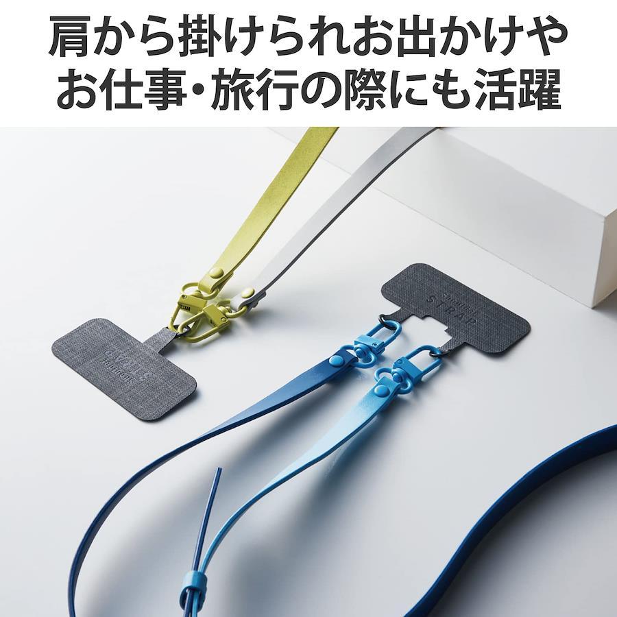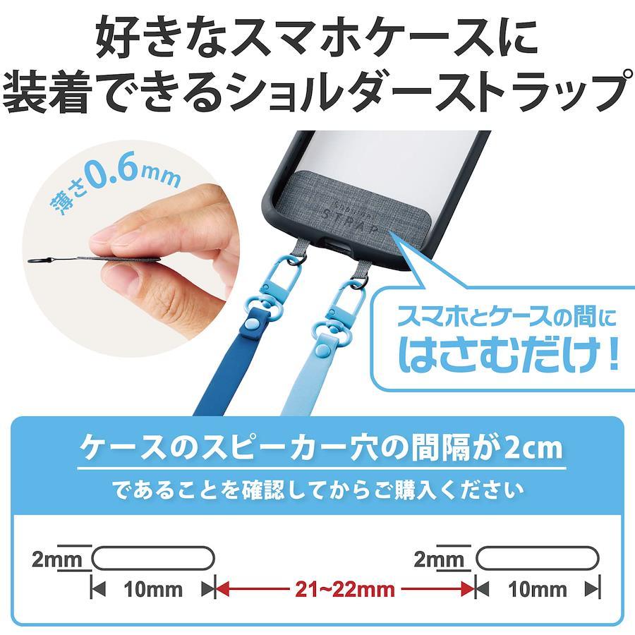 【 説明 】肩から掛けられ、バッグやポケットから取り出さなくてもすぐにスマートフォンの操作ができるショルダーストラップです。両手があいて、普段のお出かけはもちろん、お仕事や旅行などのイベント時にも活躍します。落下、盗難、紛失防止にもなります。取り外しやすいフックを使用しているので、ストラップの着脱が簡単にできます。ストラップは調節パーツでお好みの長さにできます。マットなポリウレタン素材でポップなツートンカラーを採用しているので、カジュアルやスポーティーな装いに合わせやすいデザインです。ケースにストラップホールがなくても、付属のストラップシートをスマートフォンとケースの間に挟むだけで使用でき、取り外しも簡単です。ケーブル穴1口用とスピーカー穴2口用の2種類のストラップシートが付属しているので、どちらのタイプのケースにも使用できます。ストラップシートはスマートフォンやケースを傷つけにくい柔らかい素材を使用しています。ケースにフィットする0.6mmの薄型のストラップシートで簡単に装着できます。ケースの種類は、ハイブリッドケース、ソフトケースをご使用ください(ケース背面が硬い素材のものを推奨します)。シリコン製のケースには使用しないでください。ケースは、ケーブル穴がケース底面の中央にあるものや、スピーカー穴がケース底面に2か所あるものが推奨です。ケーブル穴部分が大きく開口しているケースでの使用は推奨しません。
