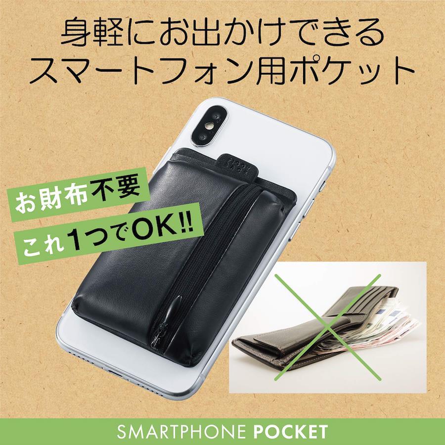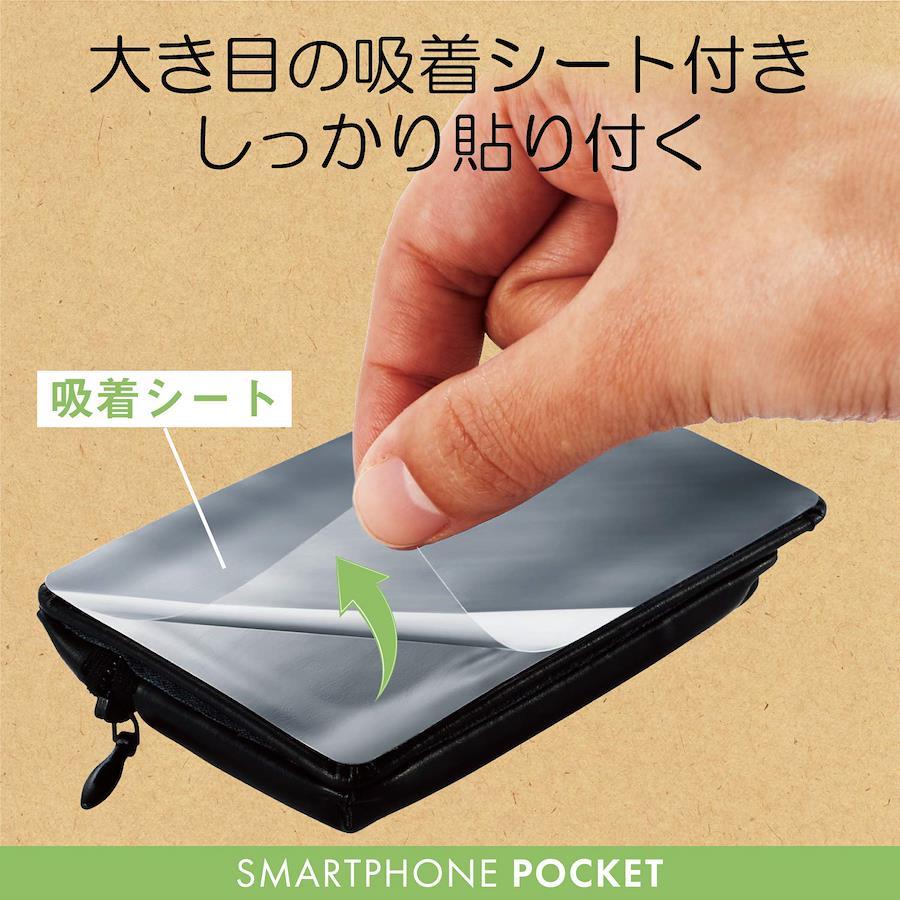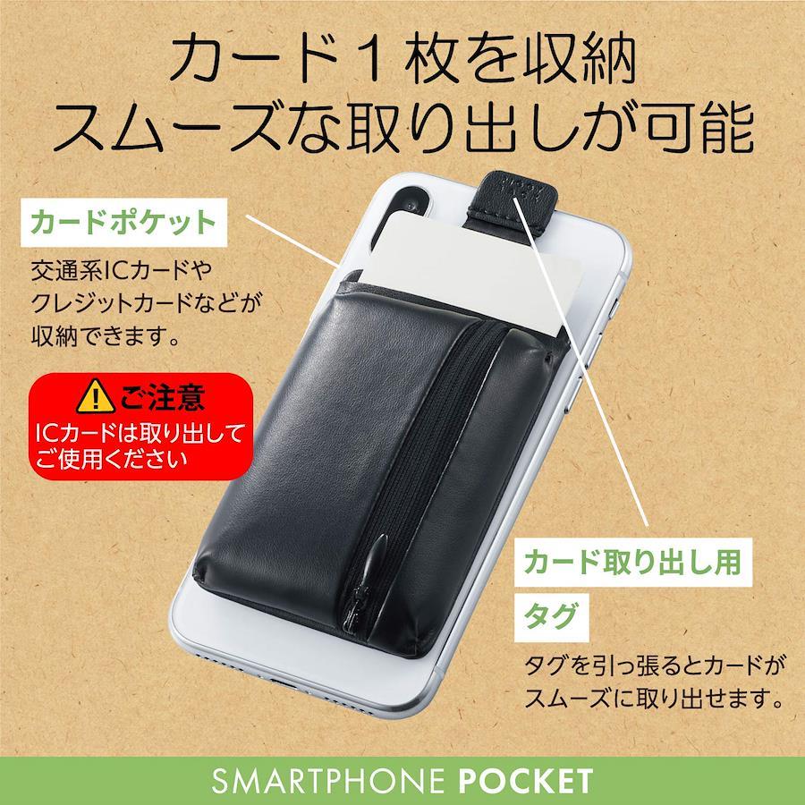 スマートフォンの背面に貼り付けることができる、スマホ用収納ポケットです。