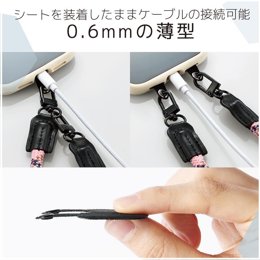 ■ケースにフィットする0.6mmの薄型のストラップホールシートで簡単に装着できます。