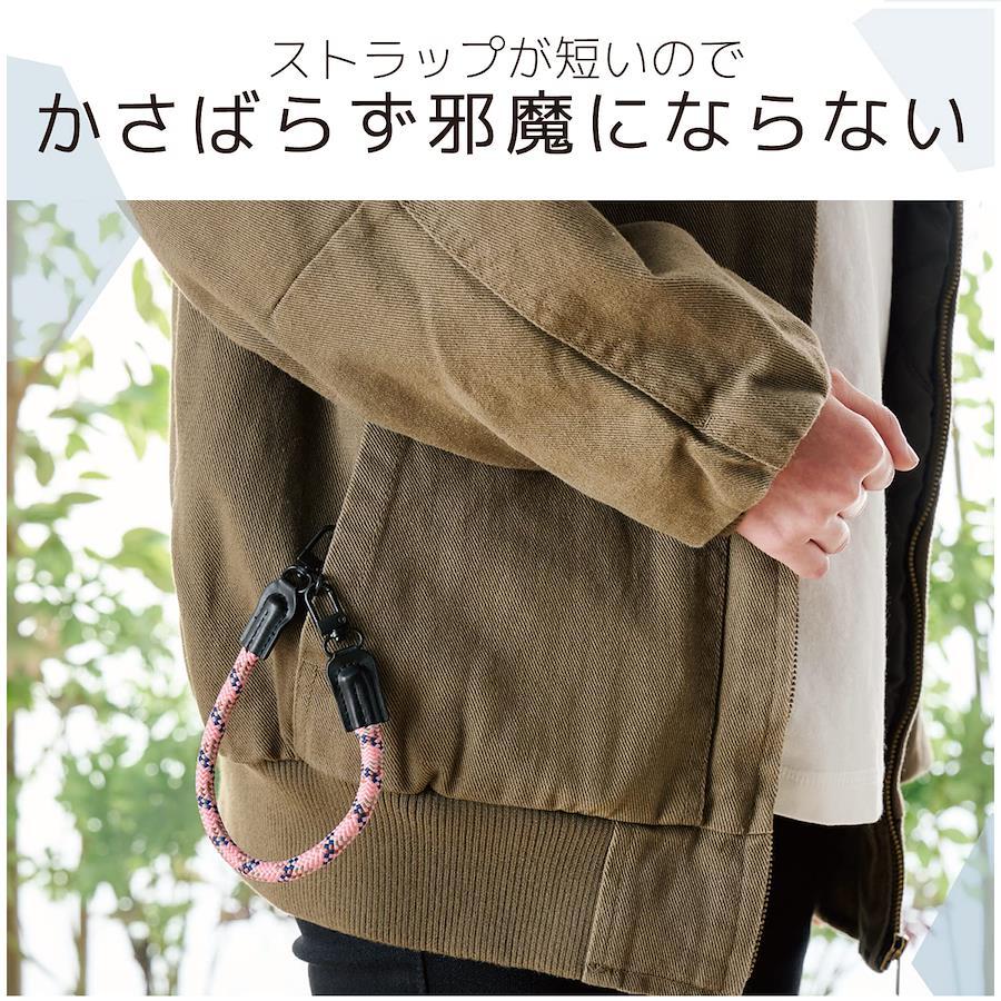 手首や腕から提げて持ち歩けるので、両手がふさがらずいつでもサッとスマートフォンの操作ができます。
