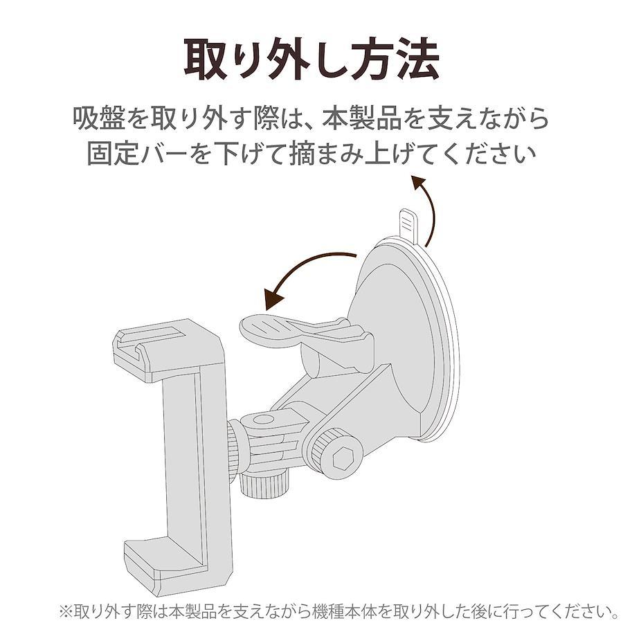 3営業日以内に発送≪新品未開封品≫:【 仕様 】■ 材質:本体(吸盤):ABS・鉄・シリコン、スマートフォンホルダー:ABS・鉄■ 外形寸法:約W75×D80×H90mm ※突起部除く (スマートフォンフォルダーを横向きに使用時)■ 最大地上高:約95mm(スマートフォンフォルダーを横向きに使用時)、約115mm(スマートフォンフォルダーを縦向きに使用時)■ 重量:本体(吸盤):約58g、スマートフォンホルダー:約26g■ カラー:ブラック■ 対応機種:4.0~6.5インチ 各種スマートフォン (ホルダー挟み幅)約60~95mm■ 内容物:本体(吸盤)、スマートフォンホルダー、取扱説明書