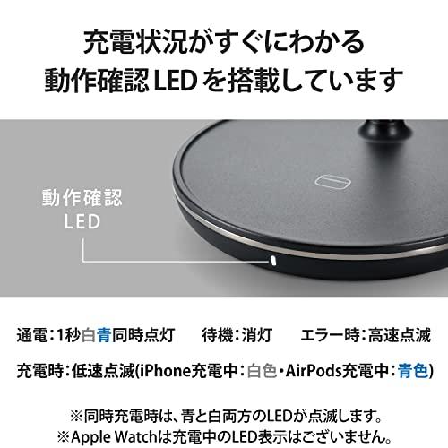 ■LED発光色:通電:1秒白青同時点灯/待機:消灯/充電時:低速点滅(iPhone充電中:白色、AirPods充電中:青色)/エラー時:高速点滅 ※同時充電時は、青と白両方のLEDが点滅します。※Apple Watchは充電中のLED表示はございません。