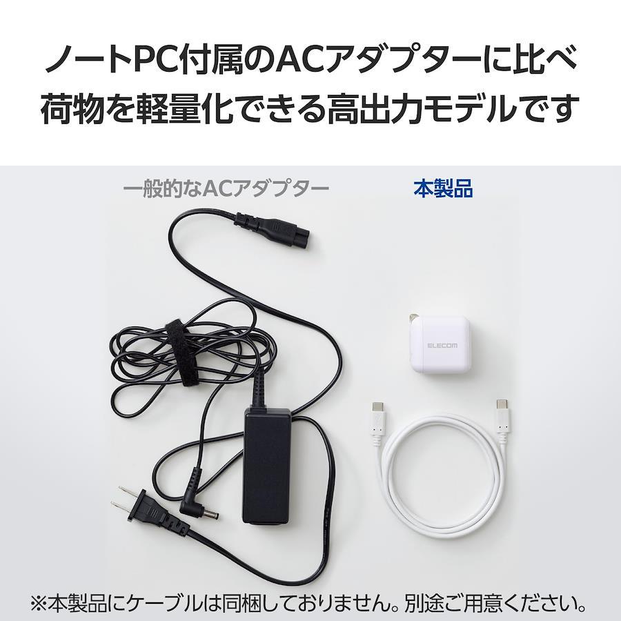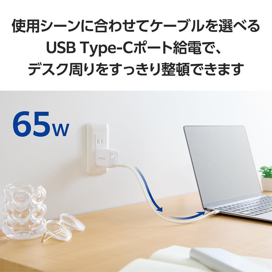 【説明】■ノートパソコンからスマートフォンまでこれ1台で充電できる、高出力のUSB AC充電器です。デバイスごとに専用の充電器を持ち運ぶ必要はありません。 ※USB Power Delivery規格で65Wまで充電できる機器に限ります。■ノートパソコン付属のACアダプターと違い必要な長さのケーブルを選んで使えるから、長すぎるケーブルでごちゃつきがちなデスク周りもこれですっきり。スペースを広々使えます。■GaN II(窒化ガリウム)を採用し、高出力ながらコンパクトサイズを実現。プラグ部分も折り畳むことができるため、バッグの中でもスペースを取らず、ビジネスでの外出やリモートワーク、出張、旅行など持ち運びにも便利です。 ※GaN II(窒化ガリウム)はGaN第1世代より、製品の小型化および軽量化を実現することで、よりモバイル性を高めています。■USB Power Delivery、PPS(Programmable Power Supply)に対応しています。iPhoneを約30分で50%まで充電できるから、外出先でスピード充電が可能です。 ※USB Power Deliveryとは、アダプターと接続機器間で情報をやり取りすることで、その機器間における最適な電力を選択し、高速充電を実現するUSB規格です。PPS(Programmable Power Supply)とは、0.2V単位で電圧を調整し、最適な電力で効率的に供給することができるUSB Power Delivery のオプション規格です。 ※本製品のUSB Power Delivery最大出力は65Wです。PPS(Programmable Power Supply)最大出力は65Wです。■USB Power DeliveryおよびPPS(Programmable Power Supply)に対応したUSB Type-Cポートを搭載し、機器に応じて出力が5V/3A、9V/3A、12V/3A、15V/3A、20V/3.25Aと可変し、iPhoneなどのスマートフォンから、iPadなどのタブレット、MacBookや高性能なWindowsノートパソコンまで幅広く高速充電できます。■本製品はUSB-IFのテストと同等のテストを当社独自で実施し、高い安全性が保たれているため、USB Power Delivery対応製品にご使用いただけます。■耐トラッキング性の要求事項(PSE:電気用品安全法)を満たしたコンセントプラグを採用しています。 ※本製品にケーブルは同梱しておりません。別途USBケーブルなどをご用意ください。 ※65Wでの充電を行う場合は、100W以上の充電に対応したUSBケーブルをご用意ください。 ※USB Type-C and USB-C are trademarks of USB Implementers Forum■自社環境認定基準を1つ以上満たし、『THINK ECOLOGY』マークを表示した製品です。■廃棄物削減に取り組み、製品に同梱する取扱説明書等をペーパーレス化した製品です。■環境保全に取り組み、製品の包装容器におけるプラスチック重量を、社内基準製品より20%以上削減した製品です。■環境保全に取り組み、製品の包装容器が紙・ダンボール・ポリ袋のみで構成されている製品です。