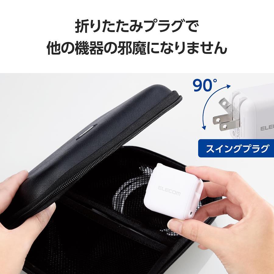 ノートパソコンからスマートフォンまでこれ1台で充電できる、高出力のUSB AC充電器です。デバイスごとに専用の充電器を持ち運ぶ必要はありません。※USB Power Delivery規格で65Wまで充電できる機器に限ります。ノートパソコン付属のACアダプターと違い必要な長さのケーブルを選んで使えるから、長すぎるケーブルでごちゃつきがちなデスク周りもこれですっきり。スペースを広々使えます。GaN II(窒化ガリウム)を採用し、高出力ながらコンパクトサイズを実現。プラグ部分も折り畳むことができるため、バッグの中でもスペースを取らず、ビジネスでの外出やリモートワーク、出張、旅行など持ち運びにも便利です。※GaN II(窒化ガリウム)はGaN第1世代より、製品の小型化および軽量化を実現することで、よりモバイル性を高めています。USB Power Delivery、PPS(Programmable Power Supply)に対応しています。iPhoneを約30分で50%まで充電できるから、外出先でスピード充電が可能です。※USB Power Deliveryとは、アダプターと接続機器間で情報をやり取りすることで、その機器間における最適な電力を選択し、高速充電を実現するUSB規格です。PPS(Programmable Power Supply)とは、0.2V単位で電圧を調整し、最適な電力で効率的に供給することができるUSB Power Delivery のオプション規格です。