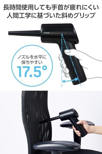 ELECOM ADWALBB01BK Rechargeable Electric Air Duster, Powerful, Upside-Down Spray, 3 Airflow Settings, LED Light, and 3 Nozzle Types