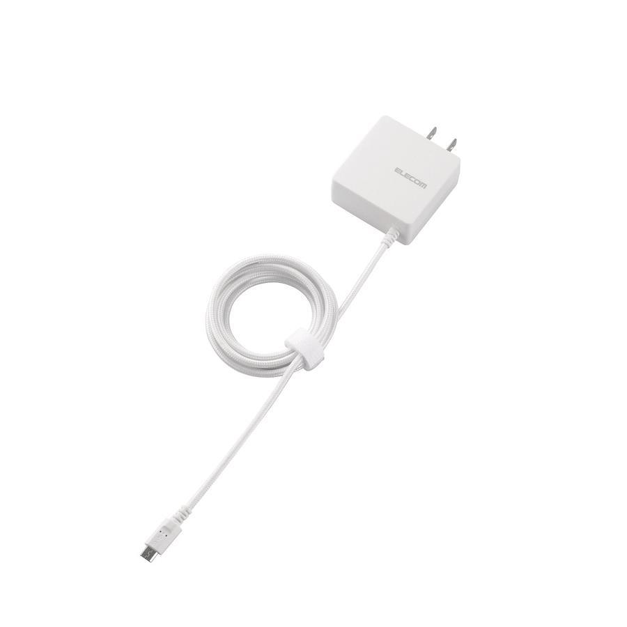 micro-Bコネクタを搭載したスマートフォンやタブレットに接続し、家庭用コンセントからそのまま充電できるAC充電器です。ケーブル一体型なので、本製品だけで気軽にmicro-Bコネクタ搭載機器の充電が可能です。ケーブルには高密度配線構造、屈曲に強い強化ブッシュ、傷がつきにくいナイロンメッシュ外皮を採用し、断線しにくい構造になっています。スリムながらも耐久力を実現しています。壁面のコンセントに接続してもゆとりのあるケーブル長1.5mです。