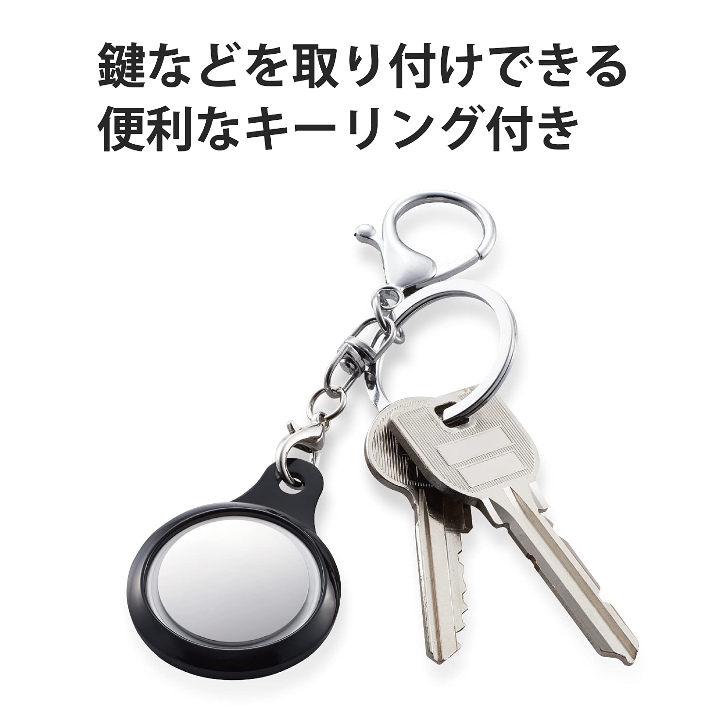【 仕様 】■ 対応機種:AirTag(2021年発売モデル)■ セット内容:バンパー本体×1、キーリング×1、カニカン×1セット■ 材質:バンパー本体:TPU(熱可塑性ポリウレタン)、キーリング:スチール、カニカン:亜鉛合金■ カラー:ブラック