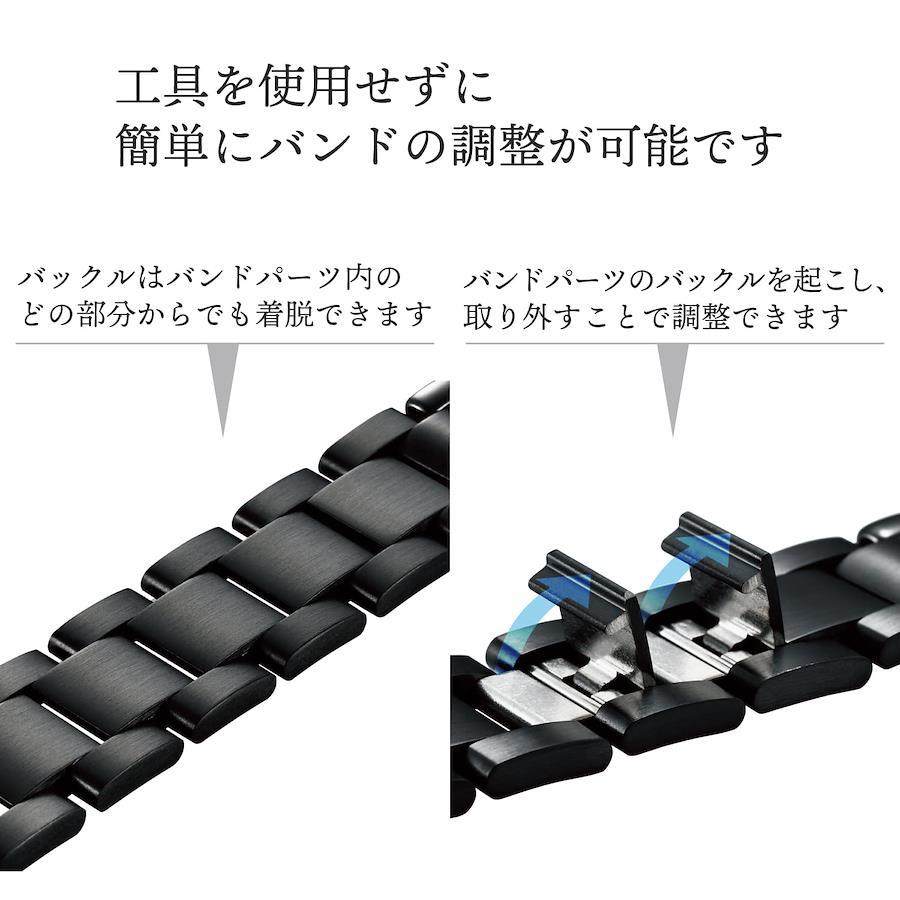 バンド中央部のコマは、一つ一つがバックルとなっているため調整工具が不要で、簡単に長さの調整が可能です。