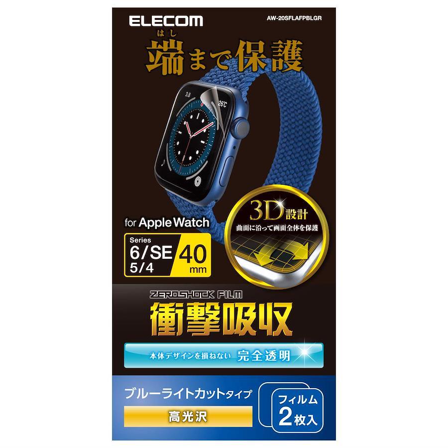 3営業日以内に発送≪新品未開封品≫:【 仕様 】■ 対応機種:Apple Watch SE(第2世代)、SE、Series 6、5、4 [40mm]■ セット内容:ラウンド対応ウレタンフィルム(衝撃吸収ブルーライトカット光沢仕様)×2、ホコリ取りシール×1、クリーニングクロス×1、ヘラ×1■ 材質:接着面:シリコン、外側:ポリウレタン