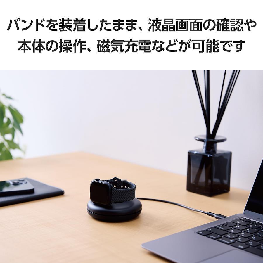■バンドをApple Watchに装着したままで液晶画面の確認、本体の操作、各種ボタン操作、純正の磁気充電ケーブルへの設置が可能です。