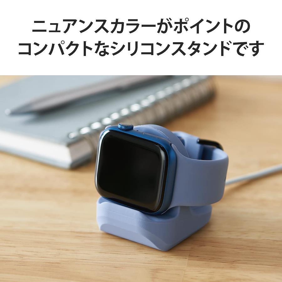 【 説明 】■ 純正Apple Watch磁気充電ケーブルを装着・接続することで、Apple Watchの設置と充電ができるApple Watch用シリコンスタンドです。■ おしゃれなニュアンスカラーがポイントの小さなシリコンスタンドです。■ Apple Watch Ultra、SE(第2世代)、SE、Series 8、7、6、5、4、3、2、1に対応しています。■ スタンドはシリコンゴム製で、Apple Watch磁気充電ケーブルの脱着を簡単に行なえます。■ 充電部の厚みが足りない純正ケーブルには、リングパーツをはめ込んだ上から充電部をスタンドへ取り付けてください。■ ※Series 6、SE以降付属の充電ケーブル■ スタンドの底面にスリットがあり、ケーブルをすっきりと配線できます。■ 本製品の構造仕様上、対応機種でもバランスの悪い場合はスタンド状態を維持することができない場合がありますのでご了承ください。