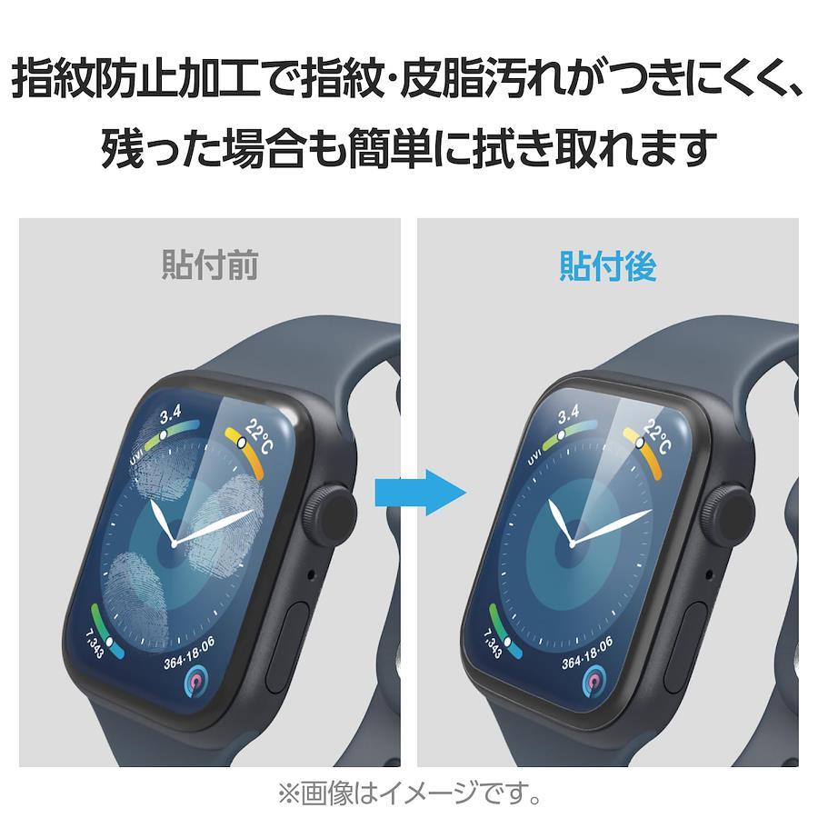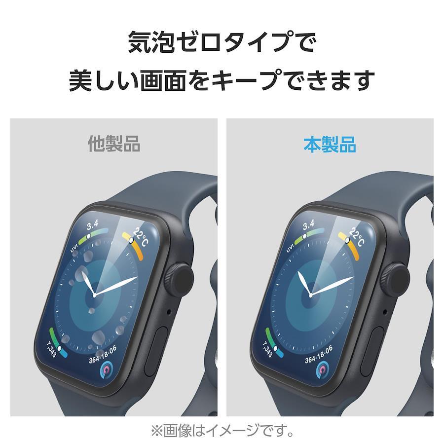 【説明】■ガラス特有のなめらかな指すべりを実現する高透明タイプのApple Watch用画面保護ガラスフィルムです。■高精細画面を損ねない高い透明度を実現します。■表面硬度10Hの強化ガラス採用により、保護ガラス表面の傷を防止します。 ※当社基準による10H鉛筆硬度試験での実力値です。■貼り付け面にアクリル系粘着剤をコーティングし、接着剤や両面テープを使わずに貼り付け可能な気泡ゼロタイプです。■指紋・皮脂汚れが付きにくく、残った場合でも簡単に拭き取れる指紋防止加工を施しています。■フィルムを貼ったままでも本体操作ができるタッチスクリーン入力に対応しています。■特殊な飛散防止設計により、万が一割れてしまった際にもガラス片が飛散することなく、高い安全性を実現しています。■ガラス特有のなめらかな指すべりで、快適に操作できます。■本体の形状に合わせたサイズにカット済みなので、パッケージから取り出してすぐに使用可能です。■貼り付けの際にずれやすいフィルムをぴったり位置合わせできる貼り付けツールの他、キレイに貼り付けるためのクリーニングクロス、ホコリ取りシールが付属しています。■自社環境認定基準を1つ以上満たし、『THINK ECOLOGY』マークを表示した製品です。■環境保全に取り組み、製品の包装容器において、原料に占める石油系プラスチック代替原料の割合が10%を超えている製品です。