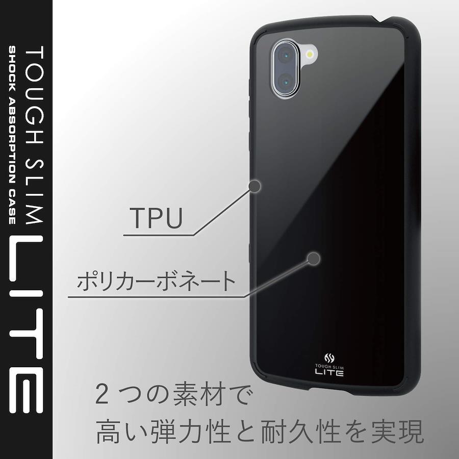 ■側面に弾力性のあるTPU素材を、背面に高硬度8Hのポリカーボネート素材を使用した、AQUOS R3用TOUGH SLIM LITEケースです。