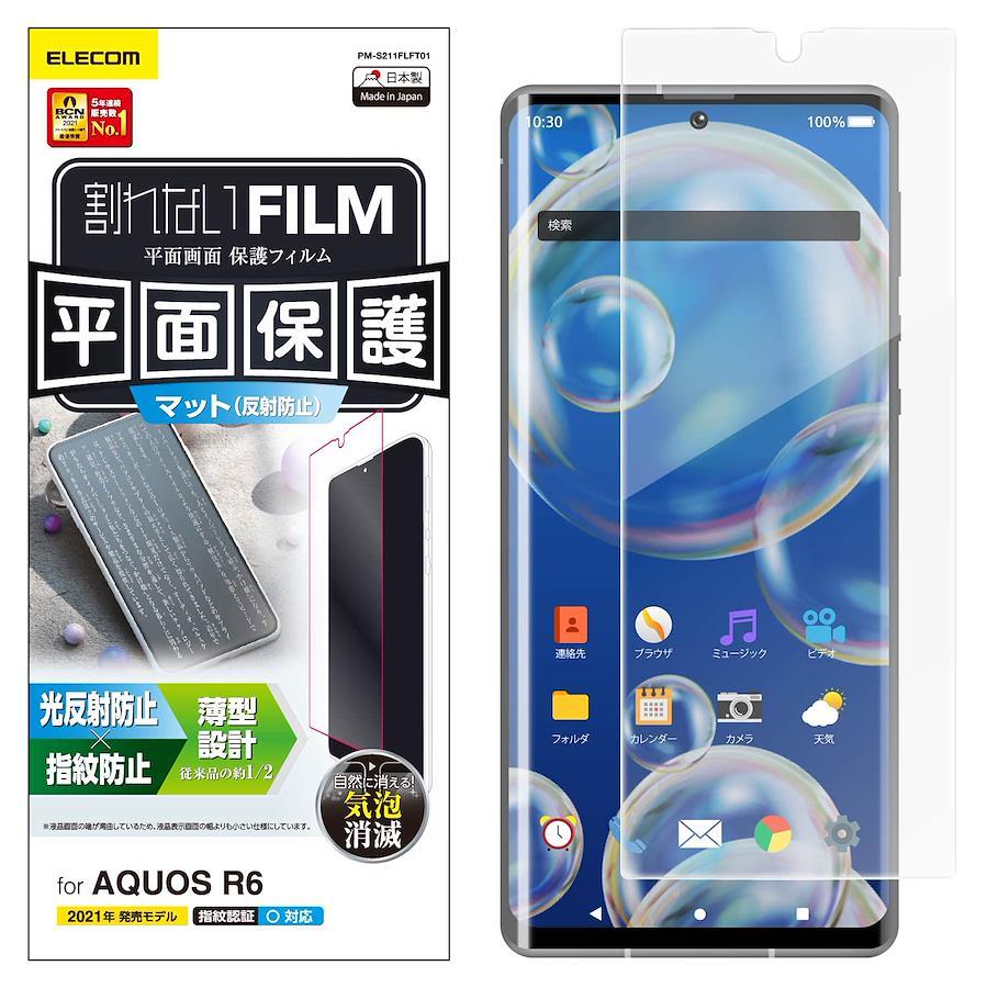 【 説明 】■ AQUOS R6の液晶画面をキズや汚れから守る、指紋防止タイプの反射防止フィルムです。■ 光の映り込みを抑え、見やすい画面を実現する反射防止タイプです。■ 貼り付け面にシリコン皮膜をコーティングし、接着剤や両面テープを使わずに貼り付け可能な自己吸着タイプです。貼りやすく、貼り直しも可能です。■ 時間の経過とともに気泡が目立たなくなる特殊吸着層を採用したエアーレスタイプです。■ 小さな気泡ができたときには、指などで押し出すことで気泡を抜くことができます。■ 指紋・皮脂汚れが付きにくく、残った場合でも簡単に拭き取れる指紋防止加工を施しています。■ こちらの製品は表面上における細菌の増殖を抑制、あるいは阻害する性能を有したもので、財団法人日本規格協会(JSA)が定める抗菌性試験に準拠したものです。■ 抗菌加工により細菌の繁殖を抑え、いつでも清潔な画面を保ちます。■ 端末の形状に合わせたサイズにカット済みなので、パッケージから取り出してすぐに使用可能です。■ フィルムを貼ったままでも本体操作ができるタッチスクリーン入力に対応しています。AQUOS R6
