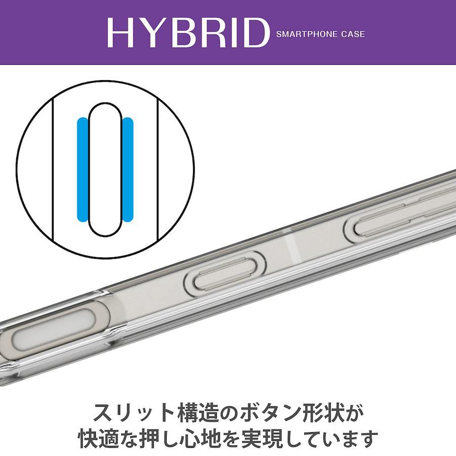 側面に弾力性のあるTPU素材を、背面に強じんで透明度の高いポリカーボネート素材を使用した、スリムなスタイルのAQUOS sense7(SH-53C/SHG10)用ハイブリッドケースです。