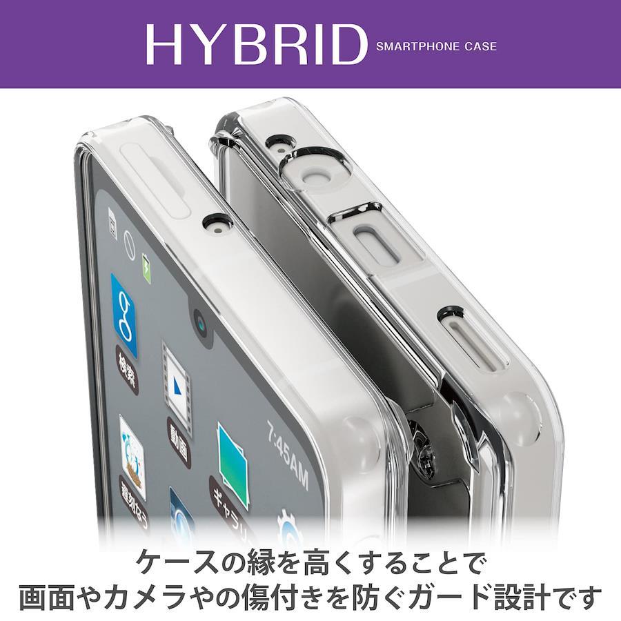 ■側面に弾力性のあるTPU素材を、背面に強じんで透明度の高いポリカーボネート素材を使用した、スリムなスタイルのAQUOS sense7(SH-53C/SHG10)用ハイブリッドケースです。