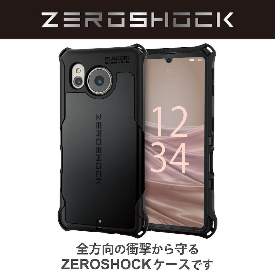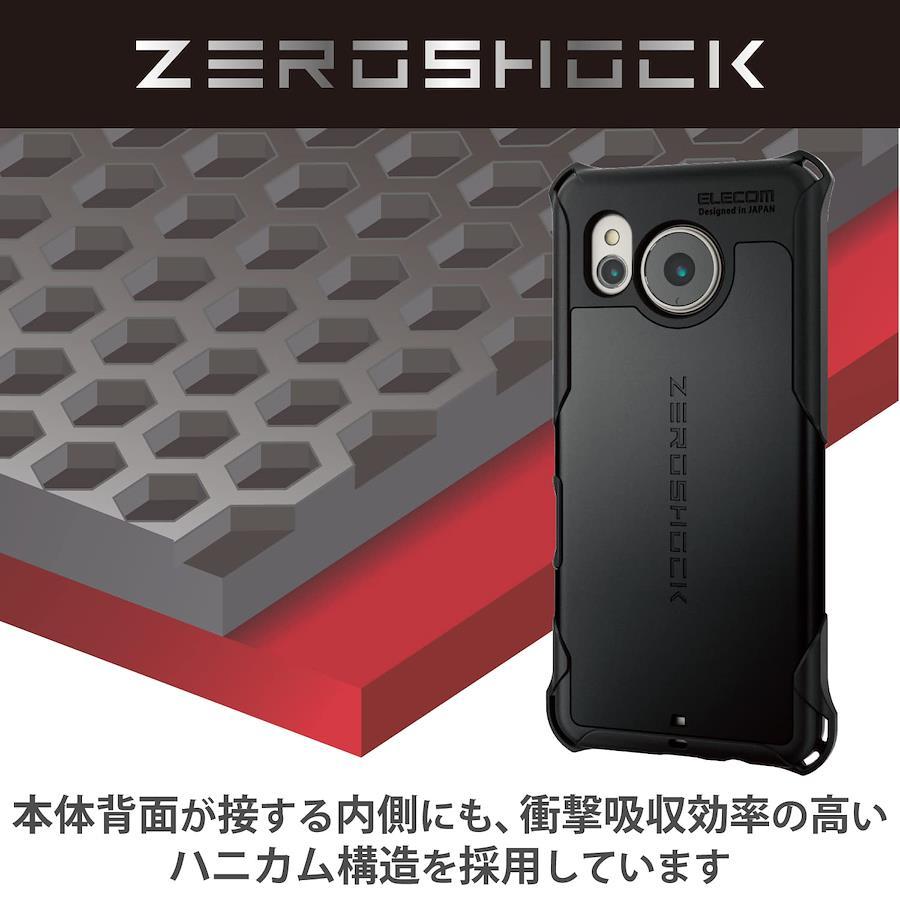 3営業日以内に発送≪新品未開封品≫:全方向の衝撃からAQUOS sense7(SH-53C/SHG10)を守るZEROSHOCKケースです。/最も大きな衝撃が予想される四つ角にダンパーを設置し、効率的に衝撃を吸収します。/衝撃吸収に適したソフト素材と、それを外側から包むハード素材を使用したダブルレイヤー設計を採用しています。/本体背面が接するケース内側にも、衝撃吸収効率の高いハニカム構造を採用しています。/ケースを装着したままで、純正の各種ケーブルの接続や写真撮影、ボタンの操作が可能です。